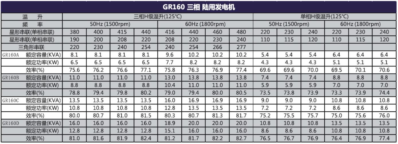 注:所有陆用额定值是基于海拔1000米内,环境温度为40°C。