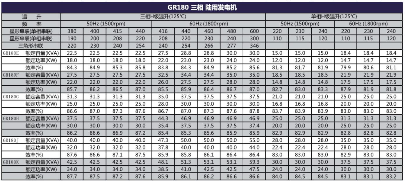 注:所有陆用额定值是基于海拔1000米内,环境温度为40°C。